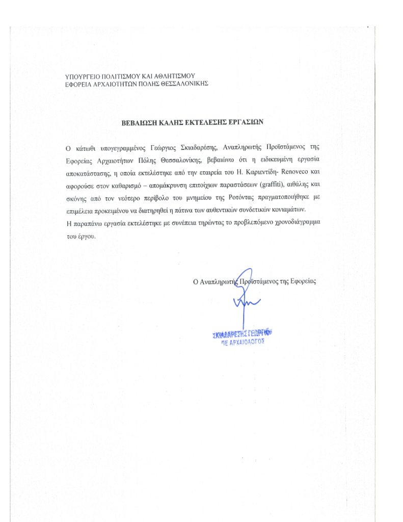 Bεβαίωση Καλής Εκτέλεσης Εργασιών Ροτόντα